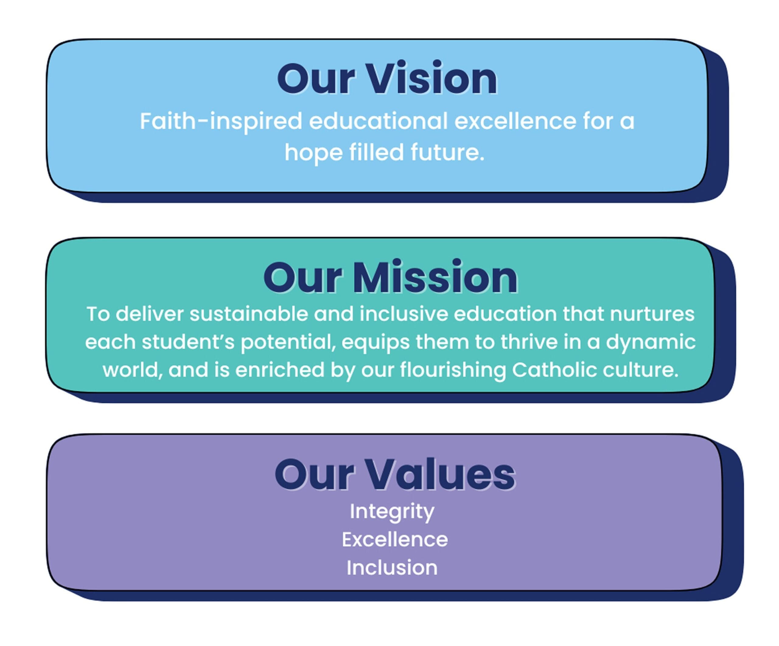 Our approach is rooted in our Vision: Faith inspired educational excellence for a faith-filled future.