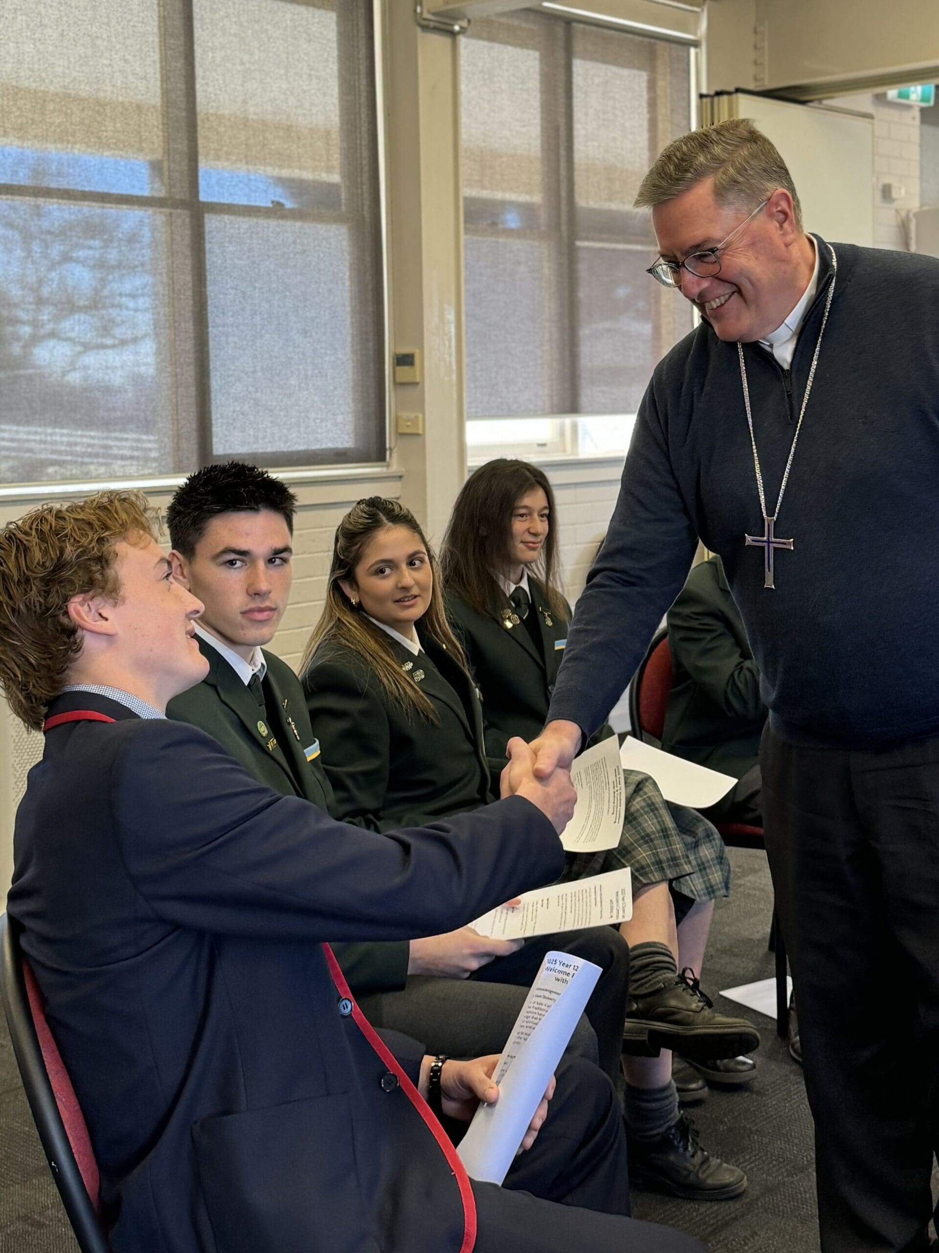 Photo above: Bishop Greg with student leaders from Catholic Secondary Colleges in the Diocese of Sale